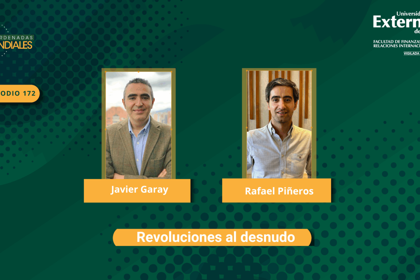 En este episodio de Coordenadas Mundiales, el podcast de la Facultad de Finanzas, Gobierno y Relaciones Internacionales de la Universidad Externado de Colombia, los profesores Javier Garay y Rafael Piñeros exploran el complejo concepto de revolución. A través de un recorrido histórico y teórico, el episodio plantea qué significa una revolución, cómo distinguirla de otros procesos como reformas, revueltas o golpes de Estado, y cuáles son sus causas, actores y consecuencias tanto a nivel nacional como internacional.