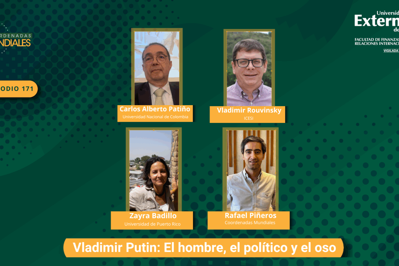 En un nuevo y fascinante episodio de Coordenadas Mundiales, el anfitrión Rafael Piñeros, junto a los expertos invitados Zaira Vadillo, Vladimir Rubinsky y el profesor Carlos Alberto Patiño, nos sumerge en un profundo análisis de la figura de Vladimir Putin. A lo largo de la conversación, el panel explora las múltiples facetas de este enigmático líder: el hombre, el político y la fuerza que ha redefinido el destino de Rusia y su posición en el mundo. Esta discusión aborda su ascenso al poder en la caótica Rusia de los años 90 y su transformación de un pragmático funcionario a un símbolo de la Rusia moderna. Un diálogo que nos invita a comprender las complejidades del poder y la geopolítica contemporánea a través de uno de sus personajes más influyentes.